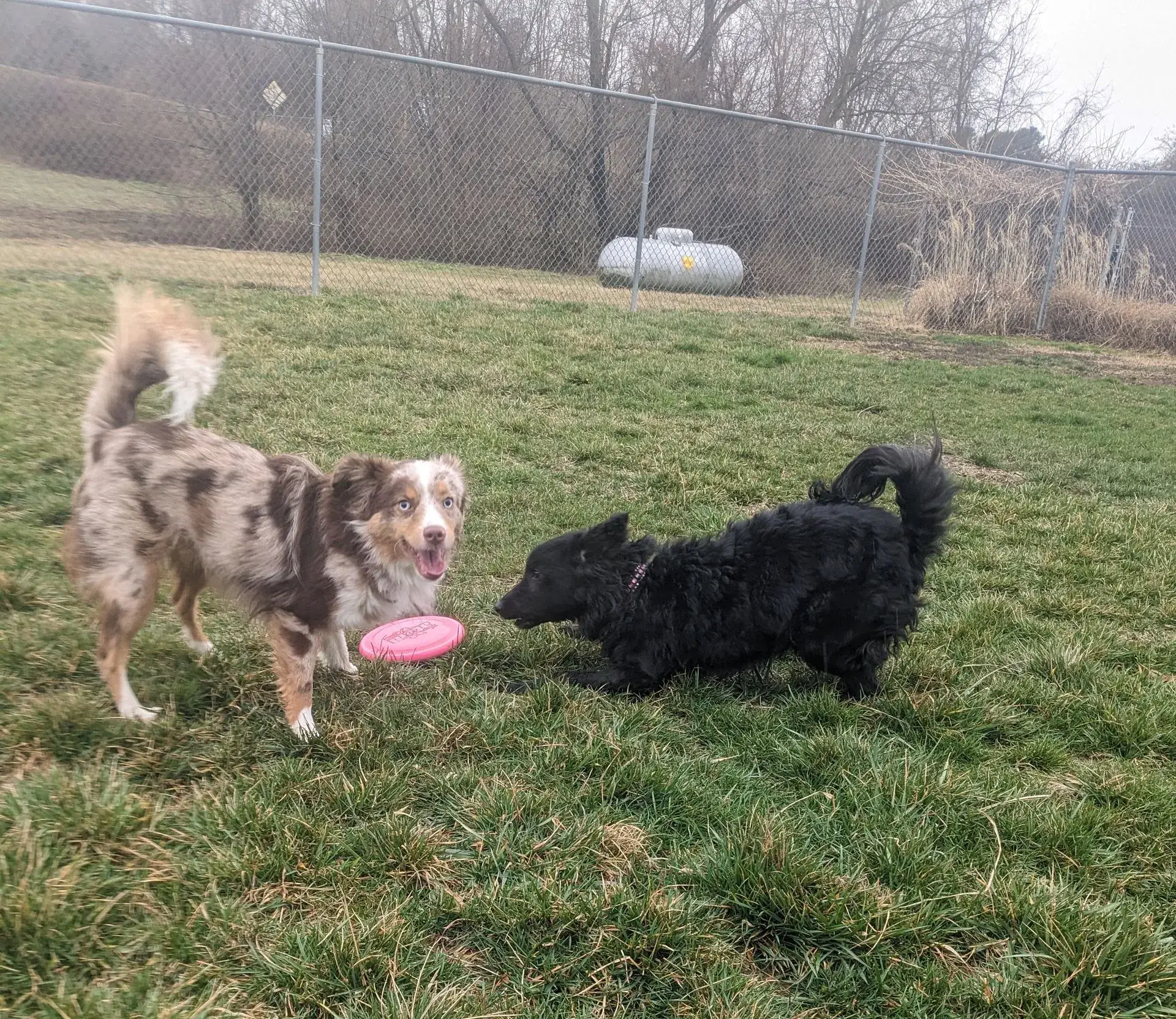 Sometimes two-legged parents have to have help taking care of their dogs and cats when they’re too busy – so they come stay at the place where Mommy O works. If they don’t spend the night, they call it “daycare”. It’s kinda like babysitting. During daycare, they get to play with fun team members a bunches of times every day. And when I get to come to work with Mommy O, sometimes I get to play with them too. But only if we get along.